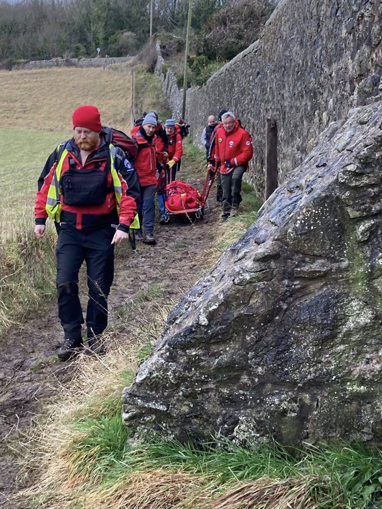 Sunday 11th January 2026 at 12.15pm the rescue Team were called by the North West Ambulance Service to attend to a 46 year-old female has had fallen and heard something snap in her leg, the caller was unable to get the casualty up and unable to get any help to assist. They were described as half way down a slippy muddy track and the patient had been on the floor for approximately 30 minutes.